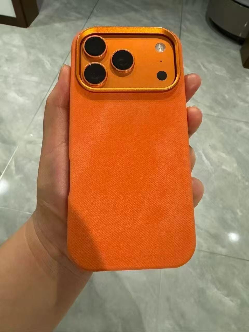 The suede surface offers a fantastic hand feel with a non-slip texture, putting an end to the worry of accidental phone drops from slippery hands. The orange color also has a sophisticated look, recommended!