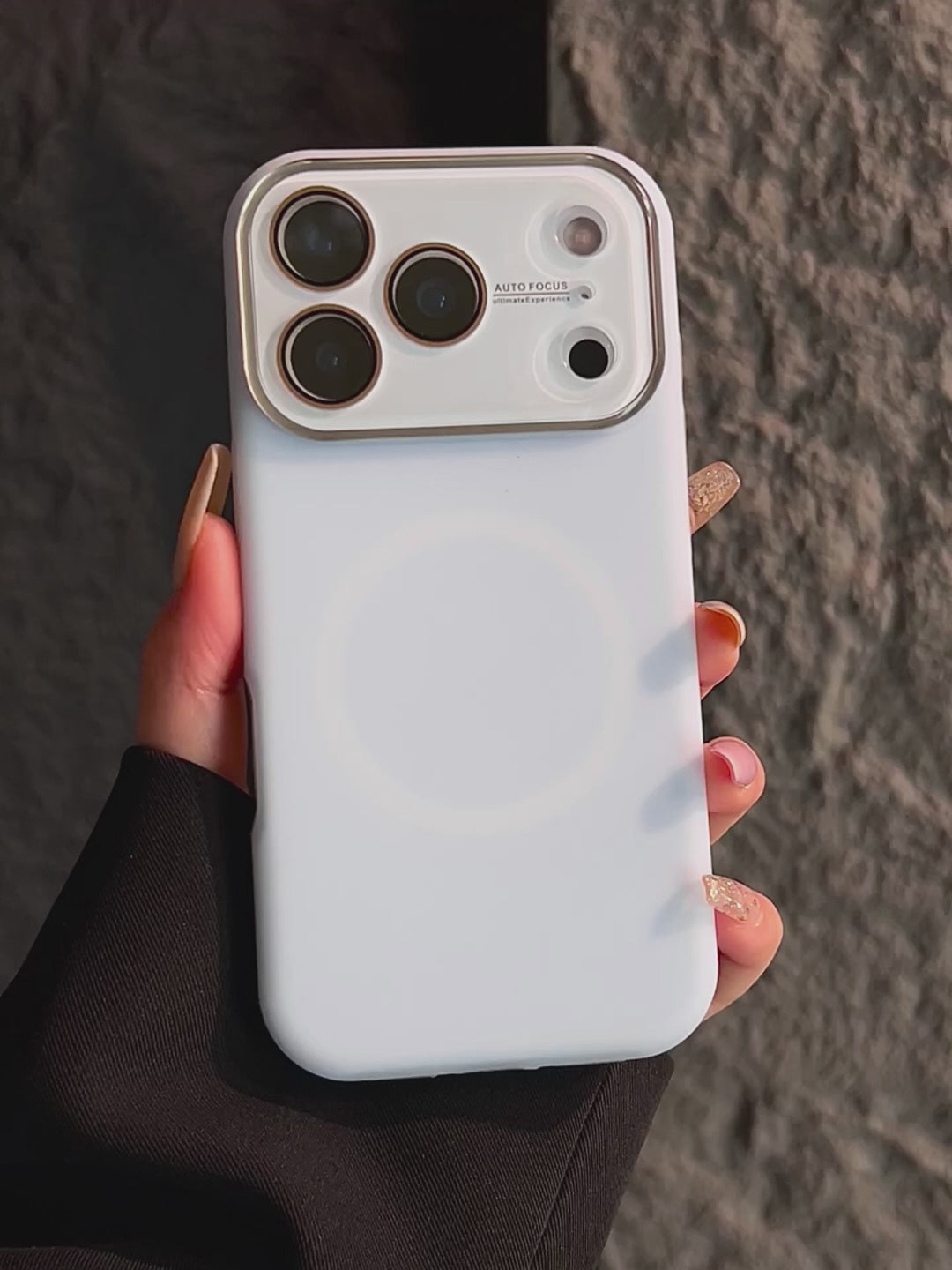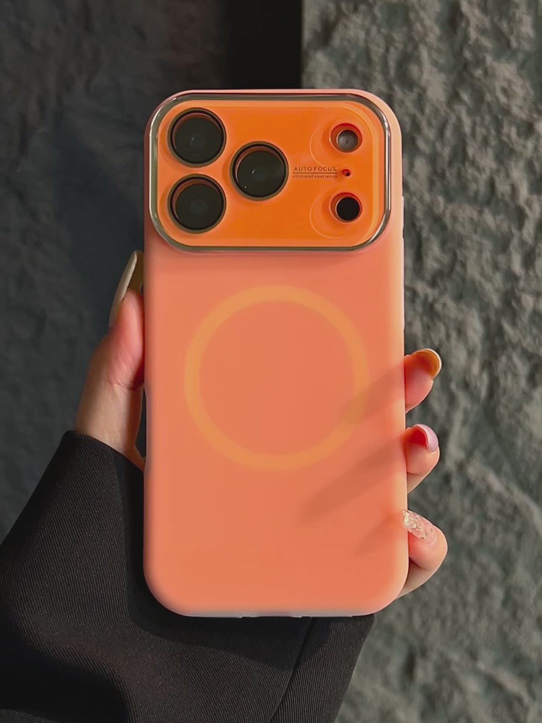 I really love this full-coverage design it protects the phone camera well, so I dont have to worry about scratches. The case material feels soft and squishy, definitely genuine liquid silicone. It also has a magnetic design, so I can charge my phone wirelessly without taking off the case. Its really convenient.